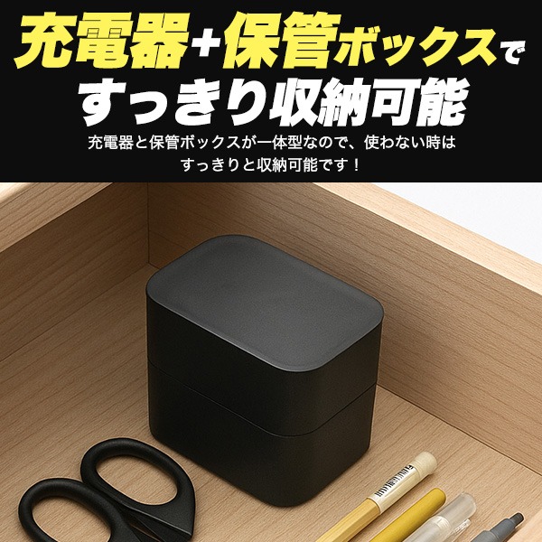 充電器と保管ボックスが一体型なので、使わない時はすっきりと収納可能です!